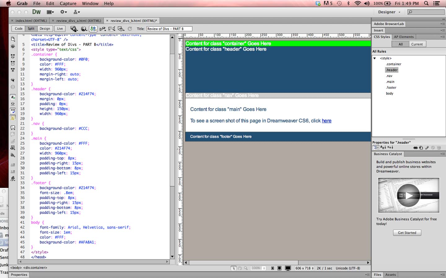 To see a screen shot of this page in Dreamweaver CS6, click here